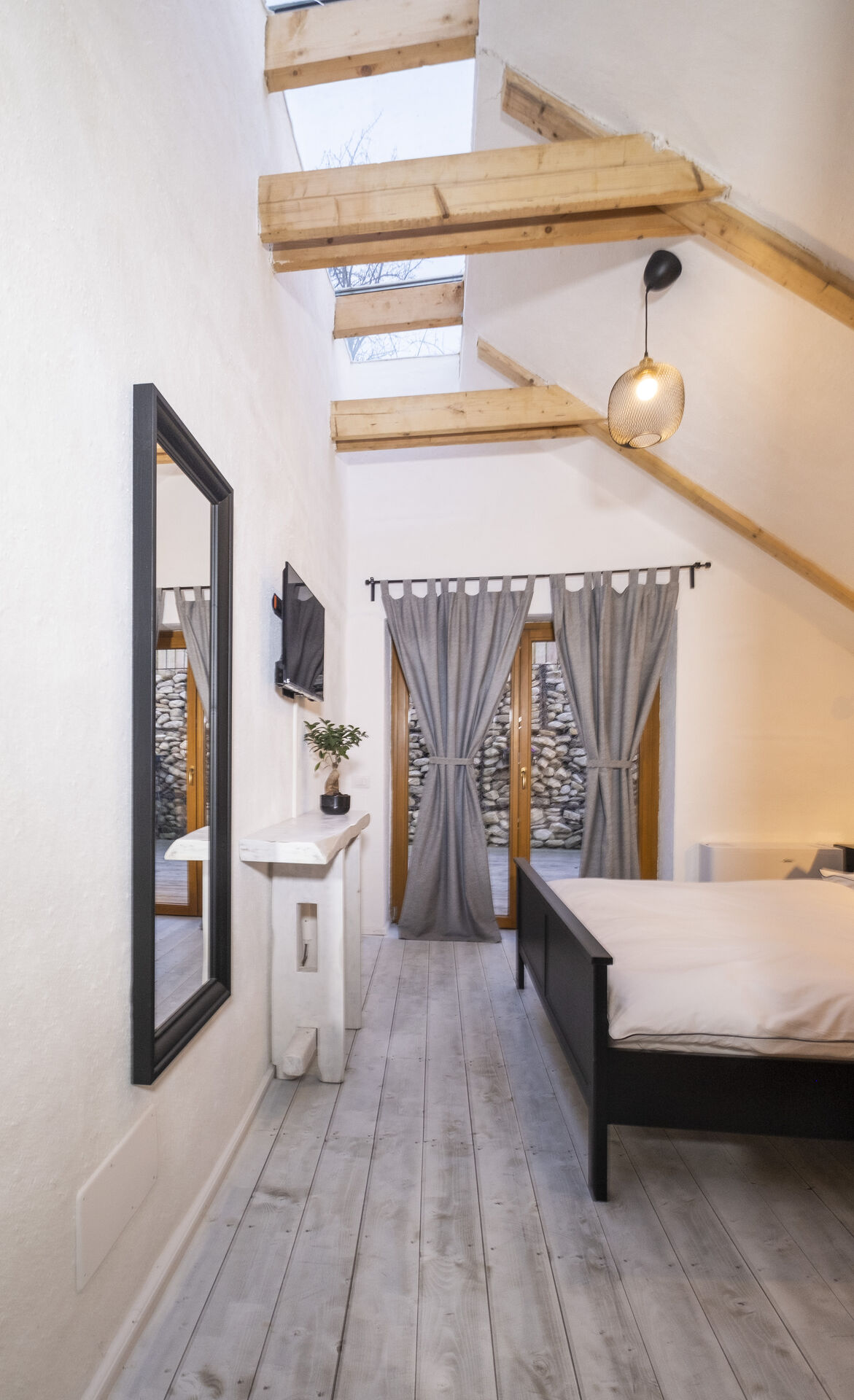Out of respect for the local tradition, Casa Thymus is built only with old materials and working techniques, made by local craftsmen - manually cut beams, earth walls, shingle roof, carved stone walls.